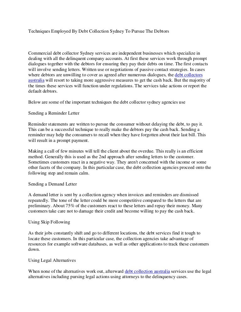 Techniques Employed By Debt Collection Sydney To Pursue The Debtors