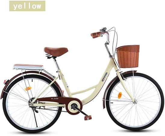 Hwoek Bicicletta Leggera Da Donna Sedile E Manubrio Regolabili 24 Citta Bicicletta Retro Telaio In Acciaio Ad Alto Tenore Di Carbonio Con Cestino E Cuscino Schienale Giallo Amazon It Sport E Tempo Libero
