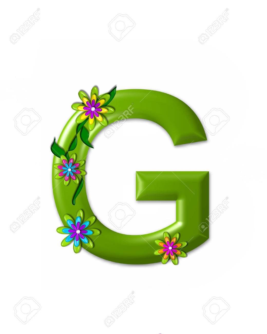 Immagini Stock La Lettera G In Alfabeto Set Paese Delle Meraviglie E 3d E Di Colore Verde Lettera E Decorato Con Fiori 3d E Viti Image