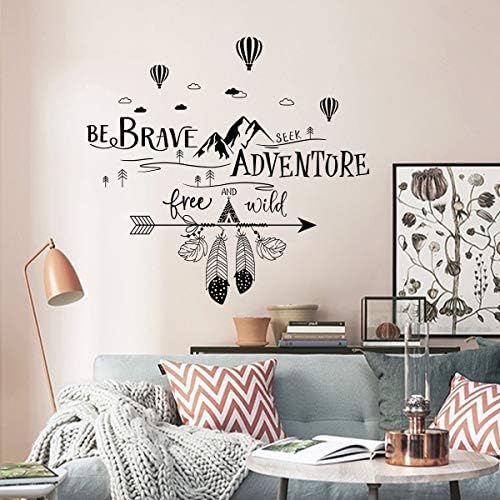 Decalmile Adesivi Murali Frasi E Scritte Be Brave Seek Adventure Adesivi Da Parete Montagne Mongolfiera Nero Decorazione Murale Camera Da Letto Soggiorno Ufficio Amazon It Casa E Cucina