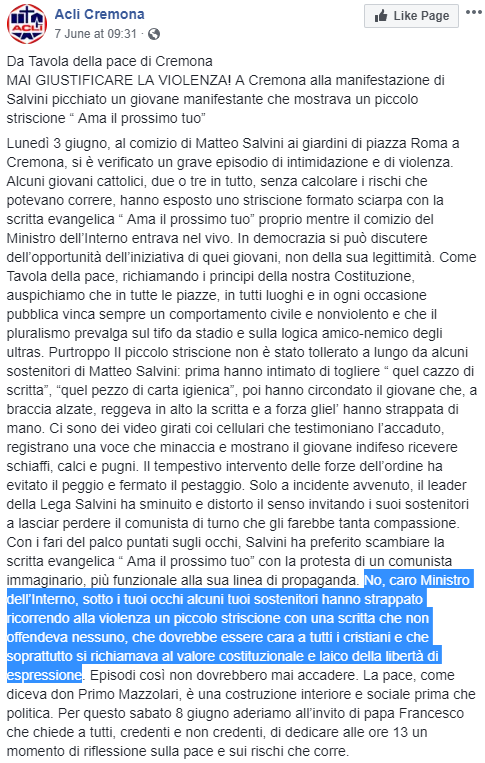 Ama Il Prossimo Tuo I Bravi Cattolici Leghisti Non Perdonano Chi Cita Il Vangelo A Cremona
