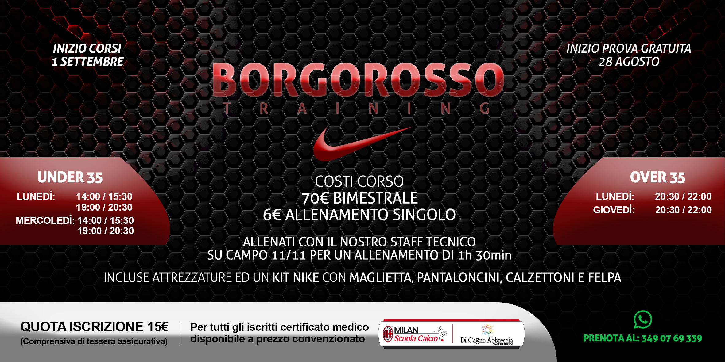 Al Via Le Iscrizioni Dei Corsi 17 18 Di Borgorosso Training Per Gli Under 35 Ed Over 35 Di Cagno Sport