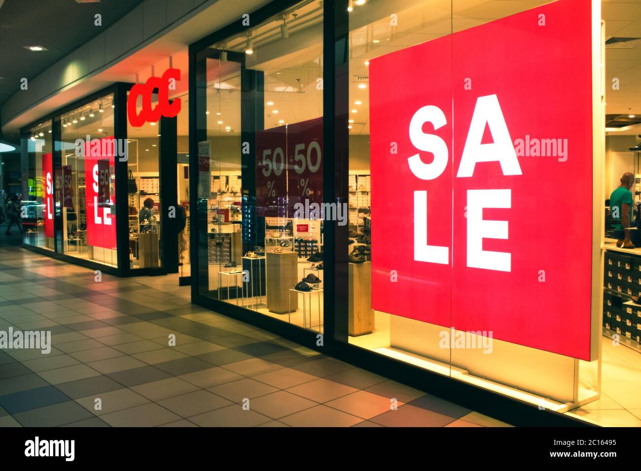 Lviv Ukraine June 14 King Cross Leopolis Shopping Mall Window Display With Text Sale White Letters On Red Poster Background Seasonal Stock Photo Alamy