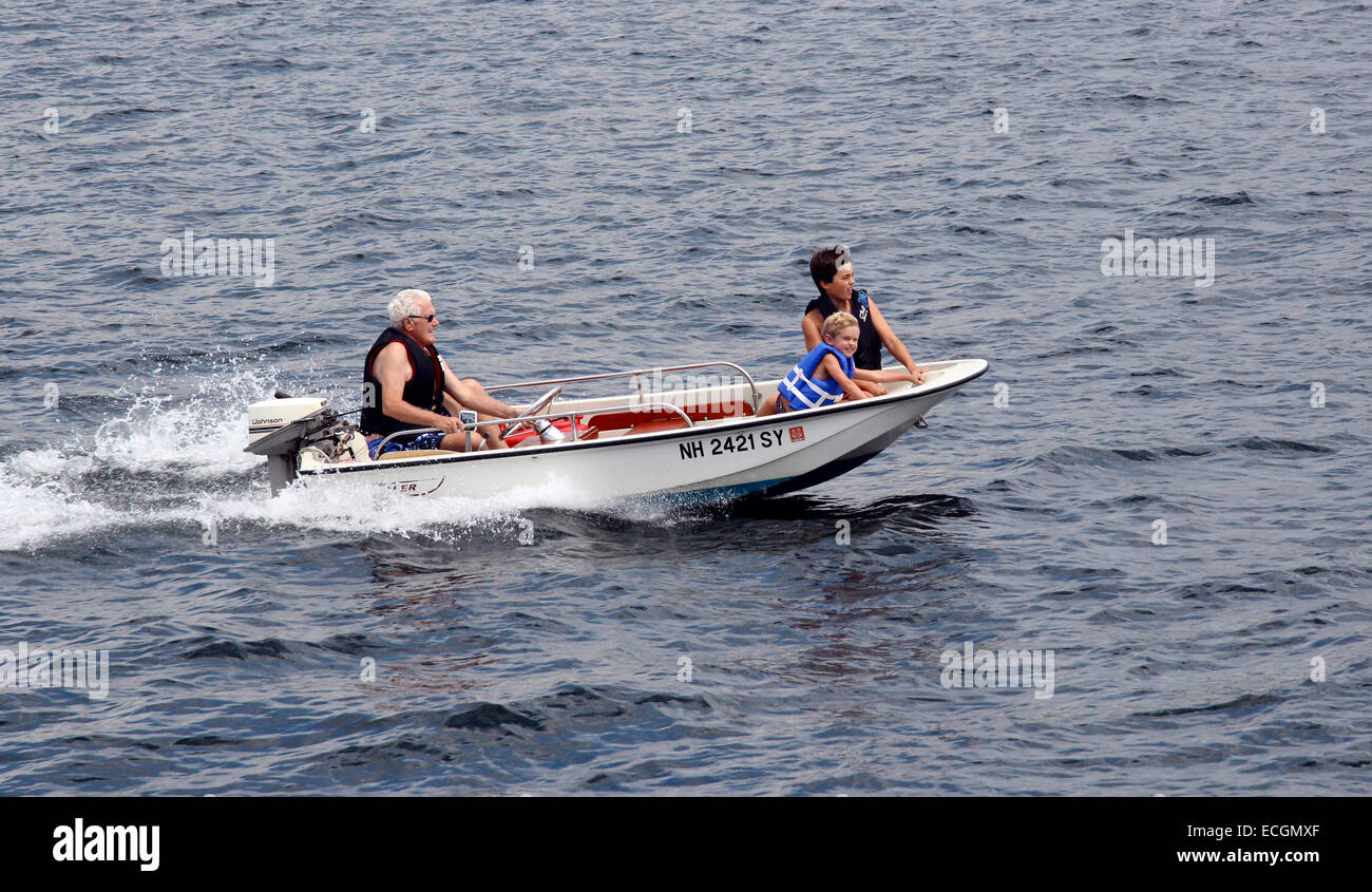Andare In Barca A Vela In Una Piccola Boston Whaler Sul Lago Winnipesaukee New Hampshire Usa America Foto Stock Alamy