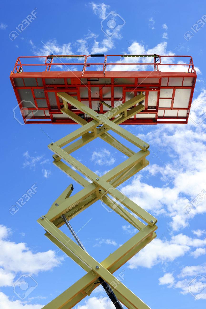 Scissor Lift Platform With Hydraulic System At Maximum Height Stock Photo Picture And Royalty Free Image Image