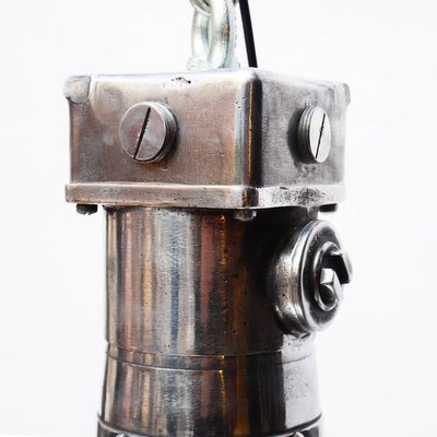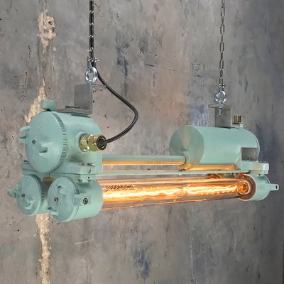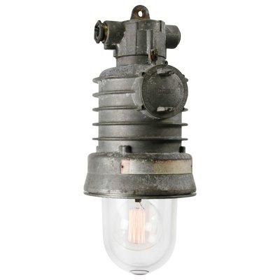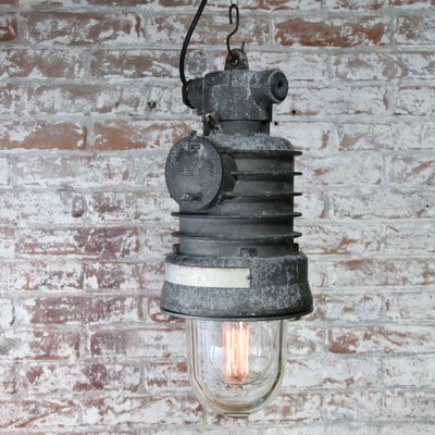 Lampada A Sospensione Industriale In Alluminio Pressofuso E Vetro In Vendita Su Pamono