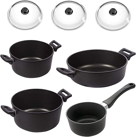 Eurolux Set Di 6 Pentole Antiaderenti In Alluminio Pressofuso Con Coperchio In Vetro Amazon It Casa E Cucina
