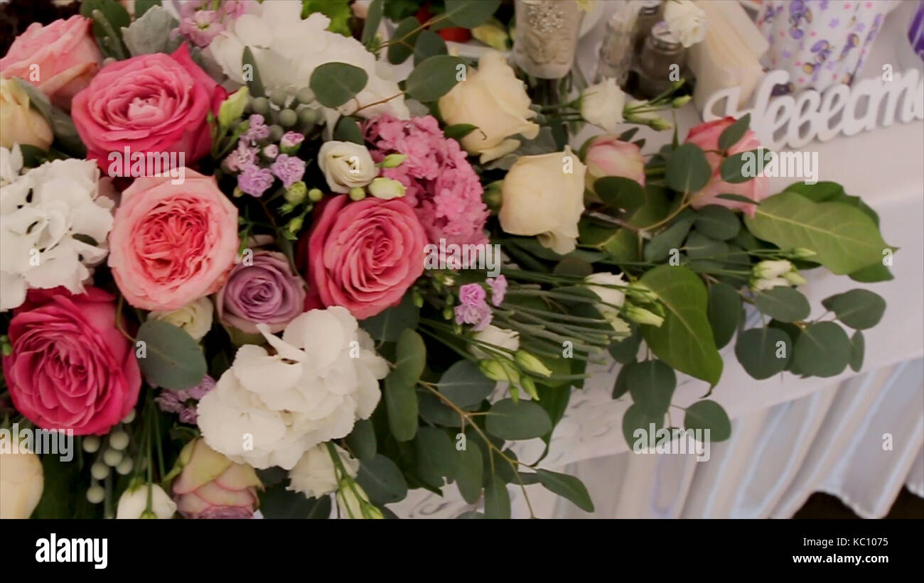 Wedding Bouquet Di Rose Sposa Bouquet Sul Giorno Di Nozze Bouquet Di Fiori Diversi Mazzo Di Fiori Di Un Bel Colore Rosa E Bianco O Rose Rosse Sulla Medicazione Sgabello Rose Foto