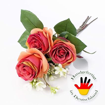 Artplants De Boquet Di Rose Artificiali Simony Con Foglie E Fiori Di Melo Rosa Salmone 55cm O cm Mazzo Di Rose Finte Fiori Centrotavola Amazon It Casa E Cucina