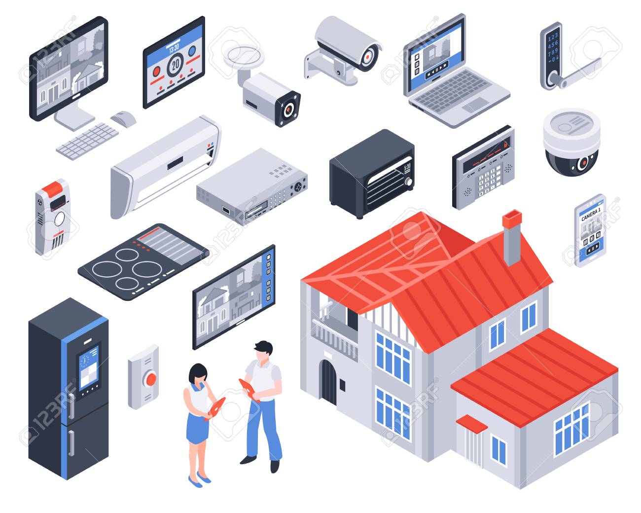 Isolated And Isometric Smart Home Icon Set With Digital Elements Royalty Free Cliparts Vectors And Stock Illustration Image