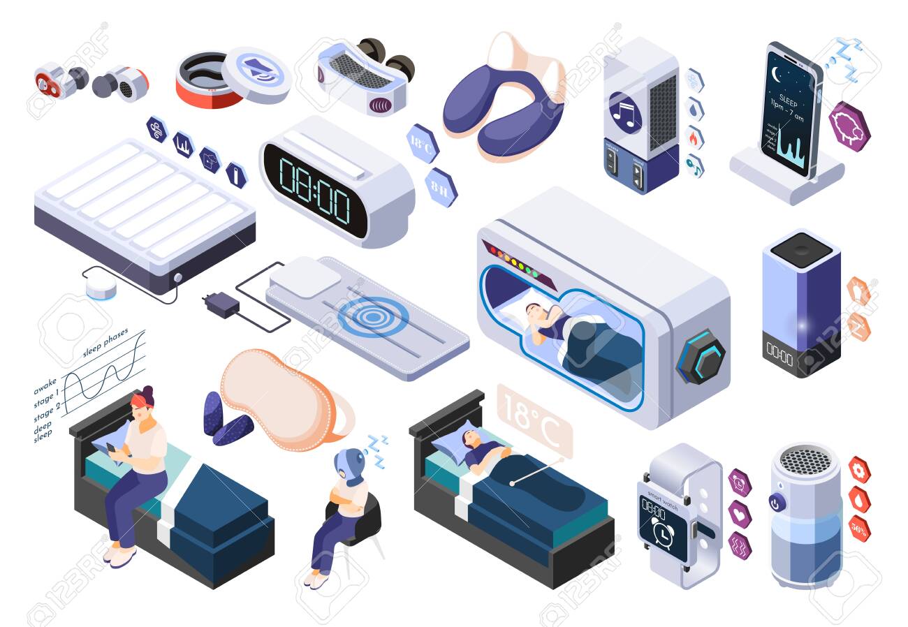 Hi Tech Sleeping Isometric Recolor Icon Set With Smart Tools Royalty Free Cliparts Vectors And Stock Illustration Image