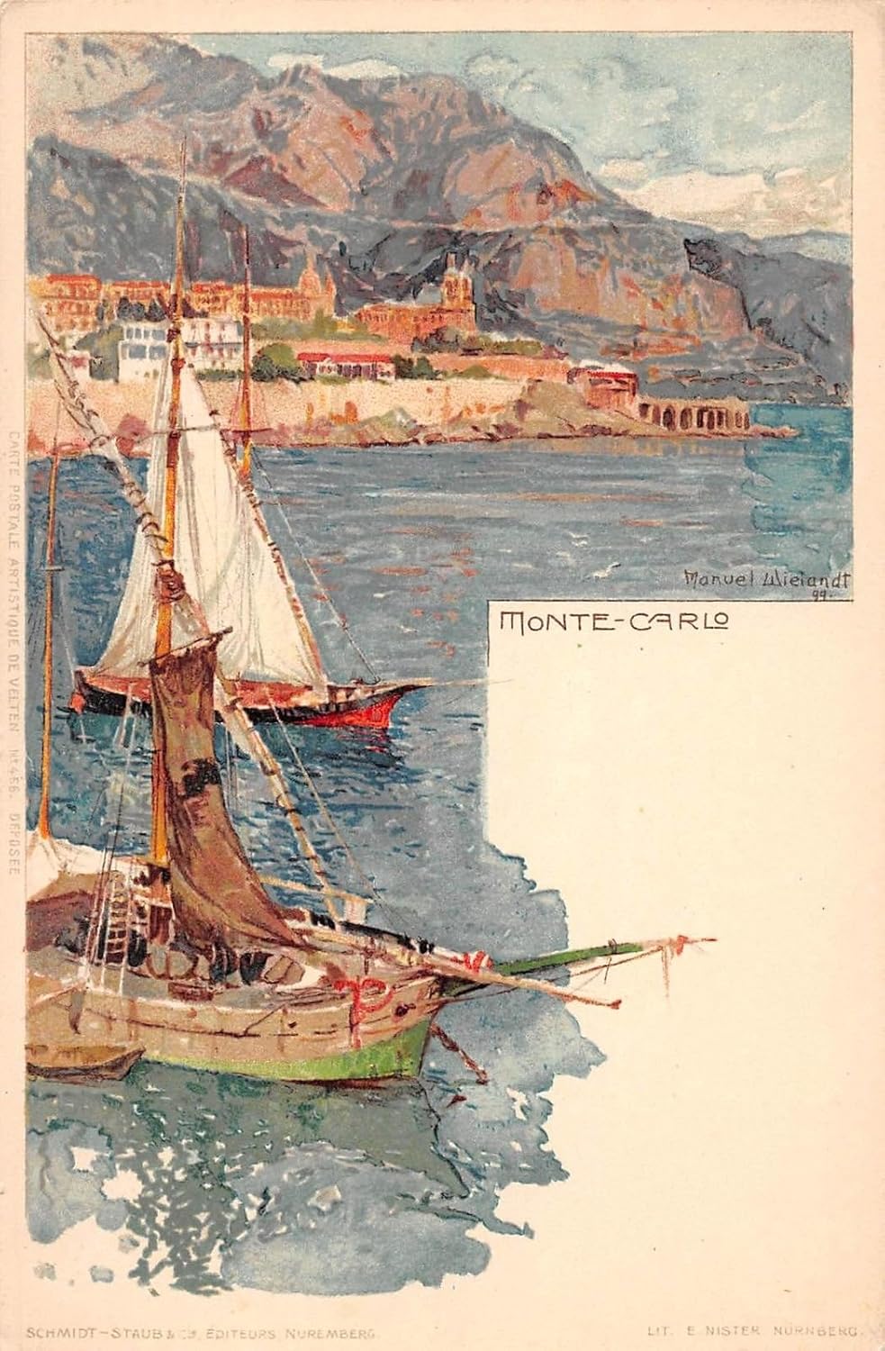 Monte Carlo Monaco Ocean View Boats Shore Line Mountains Antique Pc Z5309 At Amazon S Entertainment Collectibles Store