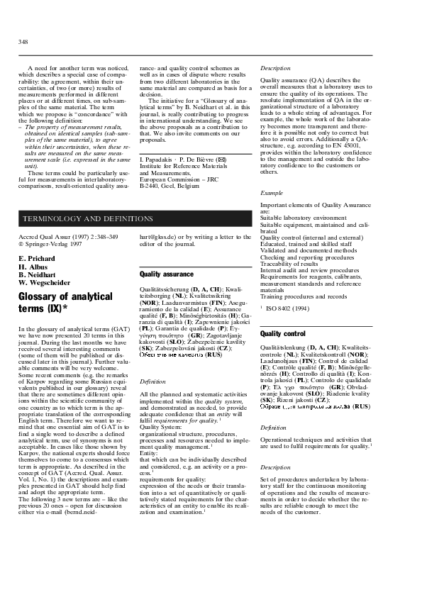 Pdf Glossary Of Analytical Terms Ix Wolfhard Wegscheider Academia Edu