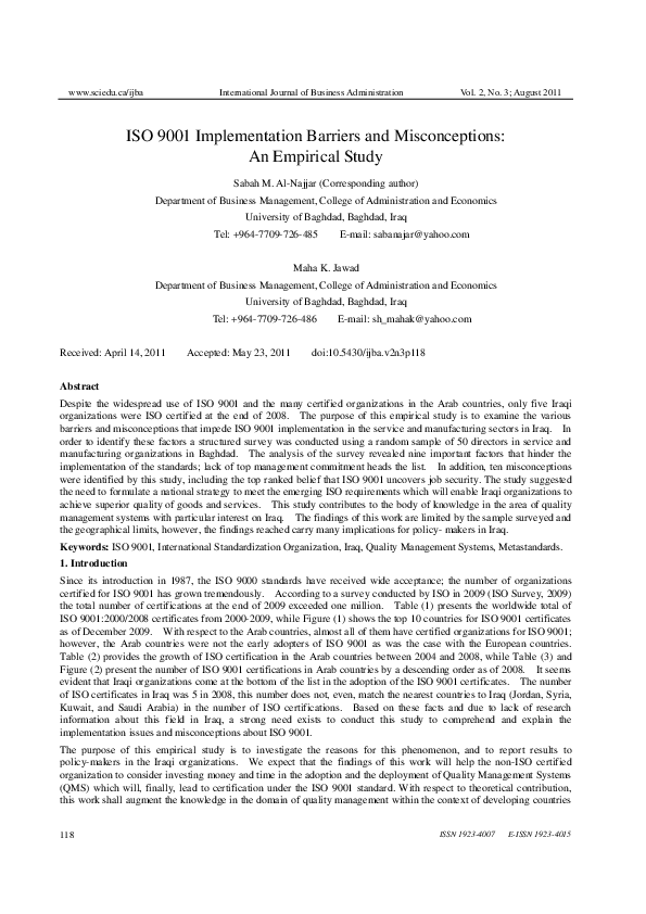 Pdf Iso 9001 Implementation Barriers And Misconceptions An Empirical Study Javier De La Hoz Academia Edu