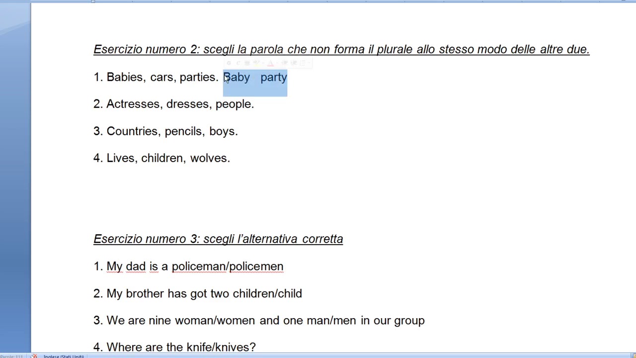 Corso Di Inglese Il Plurale Esercizi Youtube