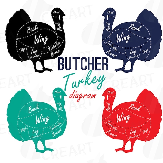 Macellaio Tacchino Carne lio Diagramma Clipart Grafico Da Etsy