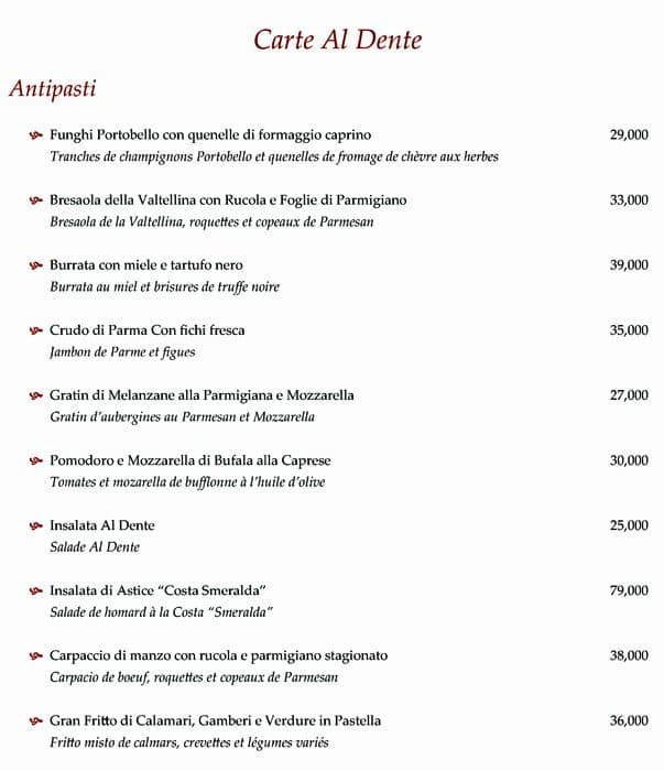 Al Dente Ristorante Hotel Albergo Menu
