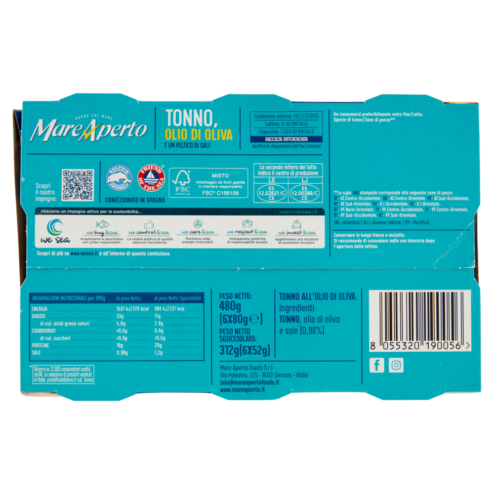 Mareaperto Tonno Olio Di Oliva E Un Pizzico Di Sale 6 X 80 G Carrefour