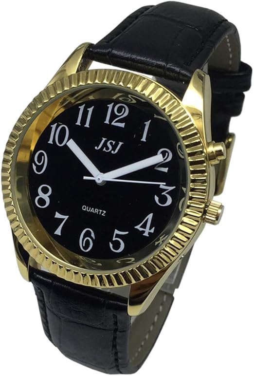 Orologio Parlante In Spagnolo Per Ciechi Bambini E Anziani Con Quadrante Dorato E Cinturino In Pelle Amazon It Orologi