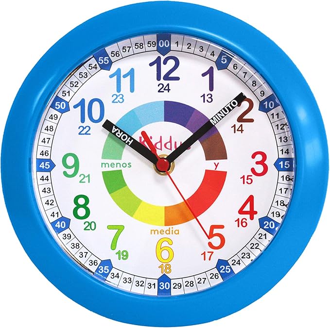 Kiddus Orologio Da Parete Didattico Per Bambini Ragazzi Analogico Con Esercizi Per Imparare A Leggere L Ora Facilita Di Lettura Movimento Al Quarzo Silenzioso Spagnolo Blu Amazon It Orologi