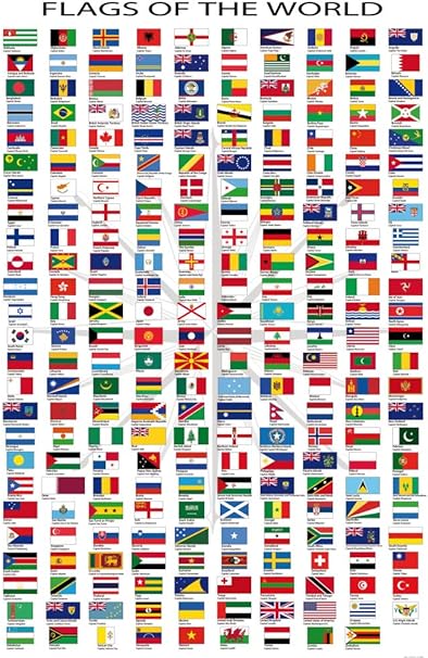 1art1 Bandiere Del Mondo Nomi Di Paesi E Capitali In Inglese Poster Stampa Geante Xxl 180 X 1cm Amazon It Casa E Cucina