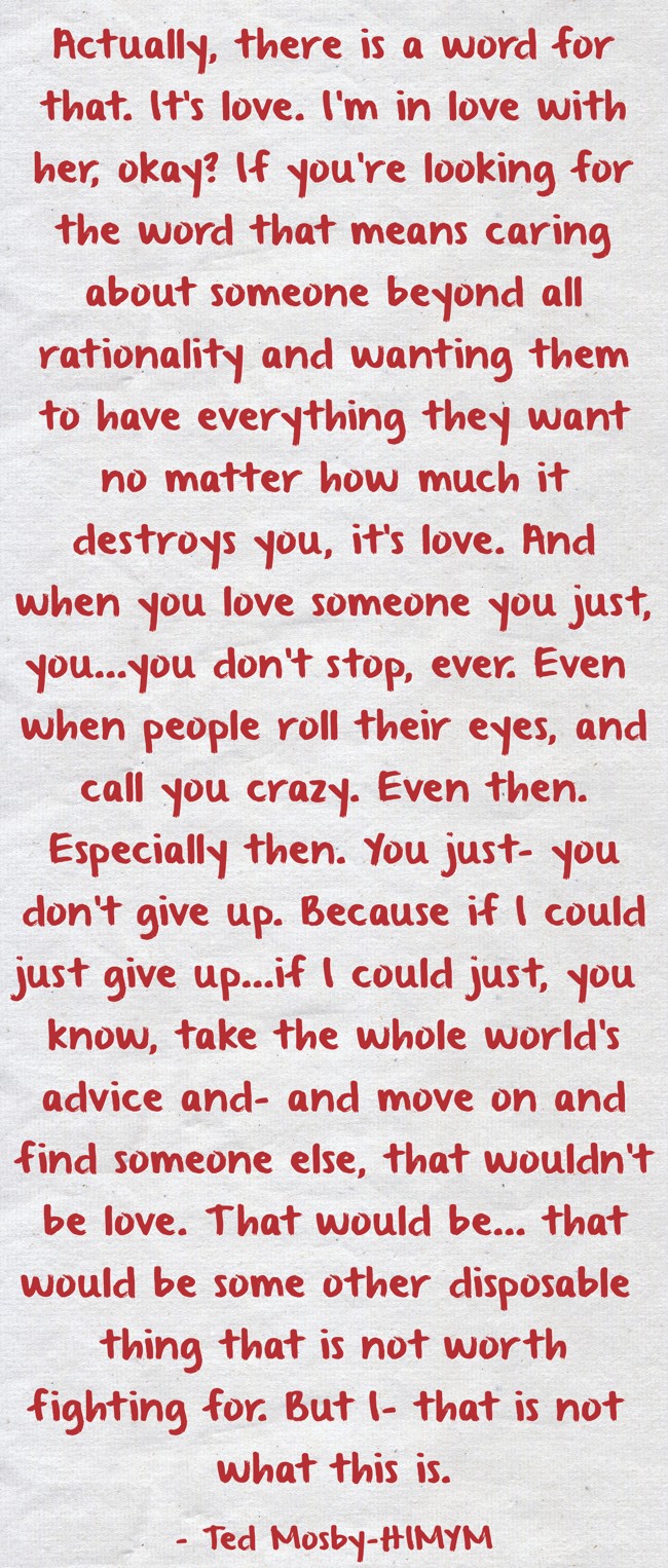 Actually There Is A Word For That It S Love I M In Love With Her Okay If You Re Looking For The Word That Means Caring About Someone Beyond All Rationality And Wanting Them