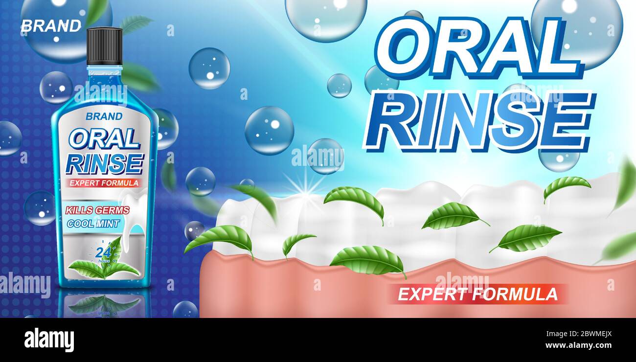 Fresh Mint Mouth Rinse Ads Mouthwash Product With Mint Leaves For Dental Care Poster White Tooth And Oral Rinse Banner Design 3d Vector Stock Vector Image Art Alamy