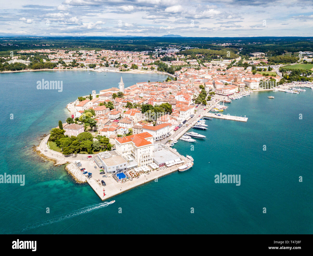 La Ciudad Croata De Porec En La Costa De Azul Turquesa Del Mar Adriatico Peninsula De Istria Croacia Campanario Rojos Tejados De Edificios Historicos B Fotografia De Stock Alamy