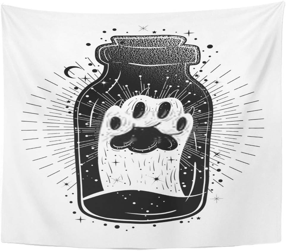 Amazon Com Llsty Tapestry Witchcraft Magic Potion Bottle Jar Cat S Paw Inside Tattoo Art Style 60x80 Inches Polyester Suitable For Dormitory Living Room Bedroom Home Wall Home Kitchen