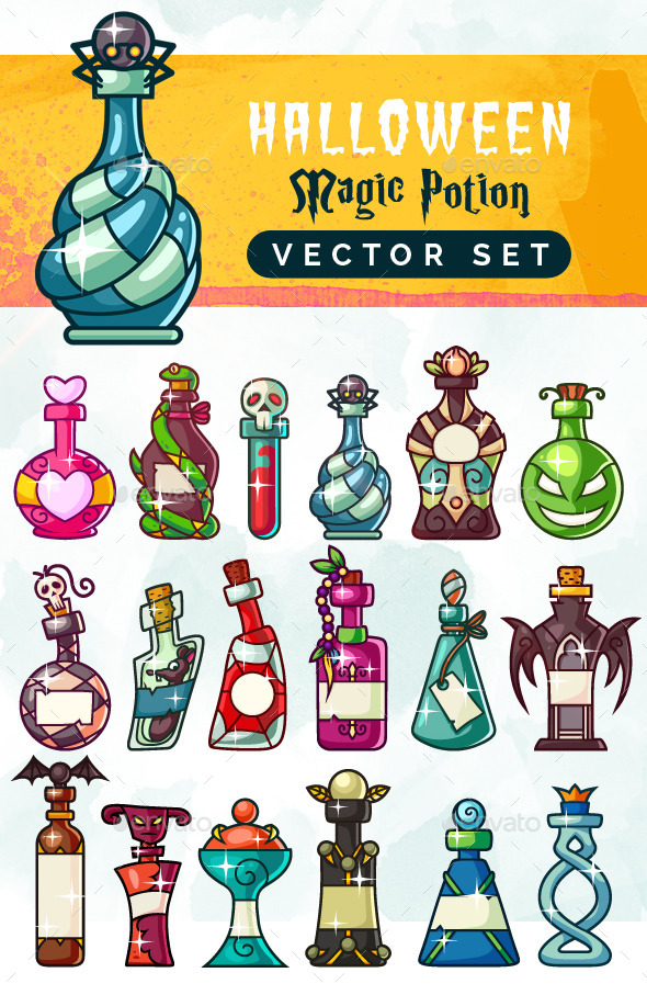 Halloween Magic Potion Bottles Set By Nelutu Graphicriver