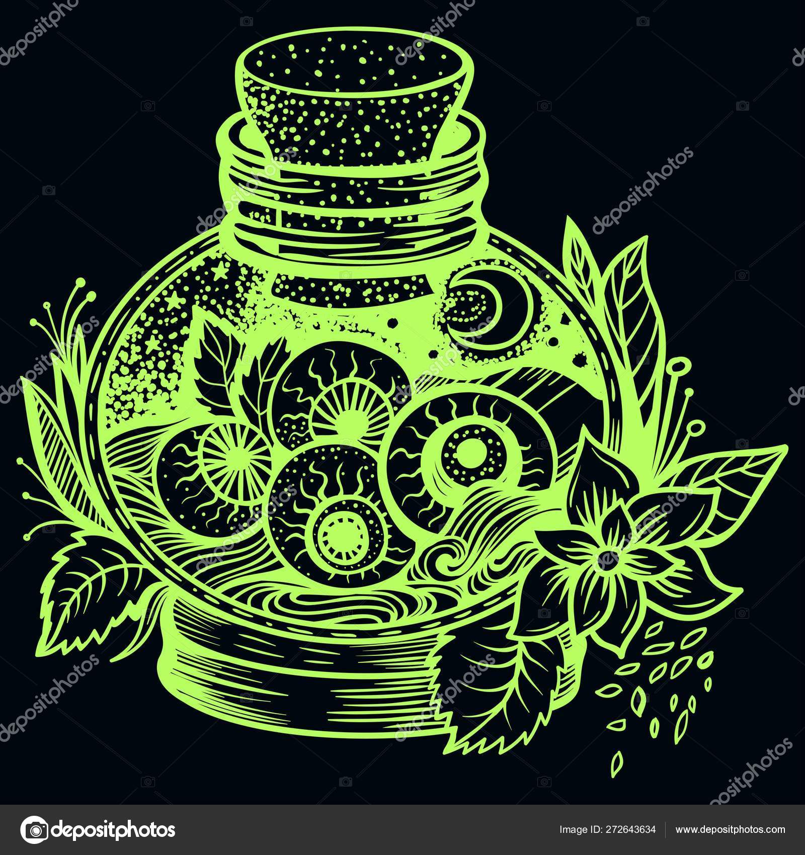 Magic Potion Bottle Jar With Eyes Inside Tattoo Art Style Illustration Bohemian And Gypsy Motifs Stock Vector C Shik Shik