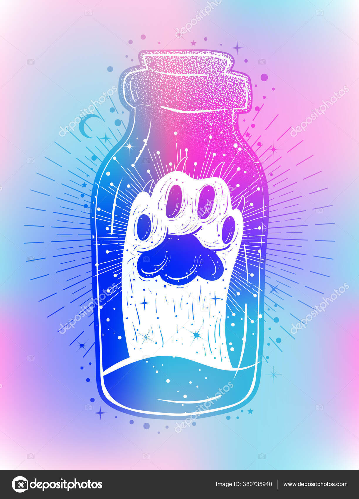 Magic Potion Bottle Jar Cat Paw Tattoo Art Style Illustration Stock Vector C Mila Djinn