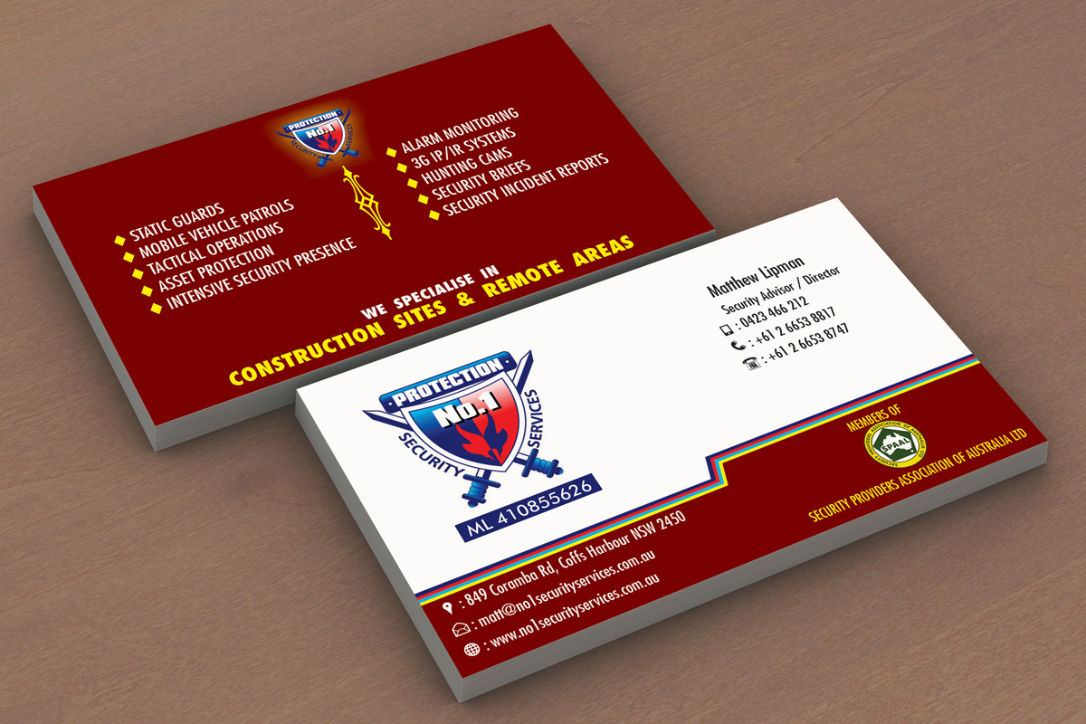 Construction Business Card Design For No 1 Security Services Pty Ltd By Madhusudan Design