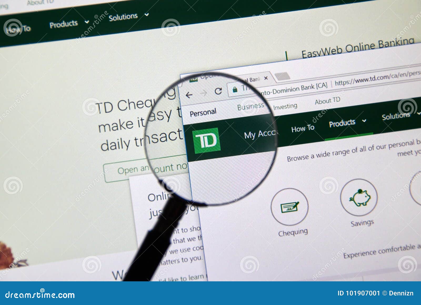 Pagina Web Della Banca Canadese Td Fotografia Editoriale Immagine Di Schermo Segno