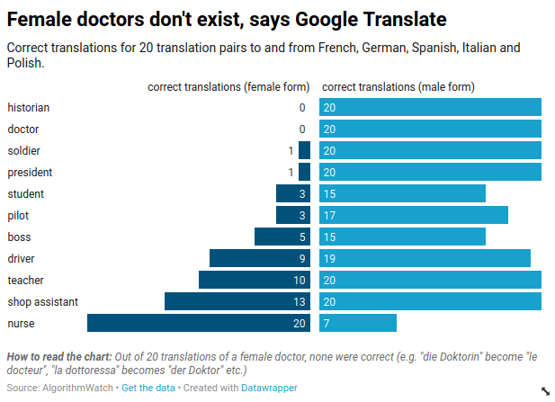Algorithmwatch A New Experiment By Algorithmwatch Shows That Google Translate Systematically Changes The Gender Of Translations When They Do Not Fit With Stereotypes Google Says It S Because Translations Between Non English