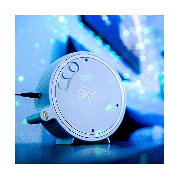 The BlissLights Sky Light is an interesting little laser projector that can project a field of drifting blue stars against a transforming blue nebula cloud Their designed projection is patent protected, so you will only get it with this projector. Product Overview Skylite shines a universe of moving green stars against a drifting blue nebula cloud, instantly changing the atmosphere of any room With soothing aurora effects that create a relaxing environment in any room, the Skylite makes a standout gift for adults and kids alike. The BlissLights Sky Lite Galaxy Projector projects a field of drifting stars against a transforming nebula cloud Enhance your home theater experience, sleep under the stars or light a romantic dinner with the simple push of a button.