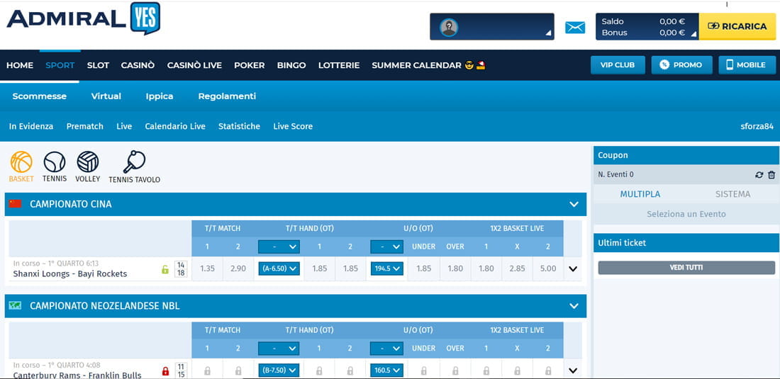 Ti offriamo anche tipologie di scommesse e quote sport appetitose sui principali avvenimenti di 🏀 Basket, 🎾 Tennis, 🏐 Pallavolo, Admiral Sport Srl Concessione GAD n Partita IVA Questo sito web utilizza cookies, anche di terze parti, e altre tecnologie di tracking/profilazione quali il fingerprinting, per. Aprano un nuovo conto di gioco. Effettuare delle scommesse con un.
