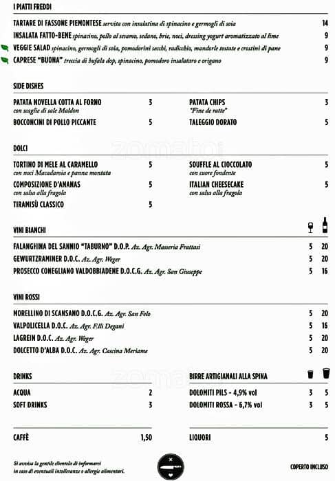 Fatto Bene A Milano Foto Del Menu Con Prezzi