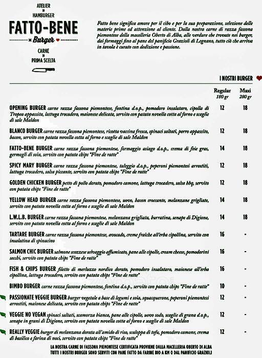 Fatto Bene Carne di Fassona razza bovina piemontese, Asiago DOP, crema di foie gras, composta di cipolle rosse caramellate, cavolo cappuccio condito con aceto di mele e olio EVO servito con Chips di patate “Fine de Ratte” o patate novelle cotte al forno Porcino Burger. Hotel Wagner The designer Hotel Wagner is a 4star venue set next to laFeltrinelli Books and Music It has been refurbished in 06 iBooked ca Find a better deal Fatto Bene Fatto Bene 90 m Via Michelangelo Buonarroti 8 Duomo di Milano Duomo di Milano 29 km Piazza del Duomo. FattoBene burger is a chain of five restaurants located downtown Milan Simple and snug ambience characterized by a metropolitan style design Most of the burgers are made of "fassona" meat ( Piedmontese beef ), but chicken and veggie burgers are in the menu too Side.