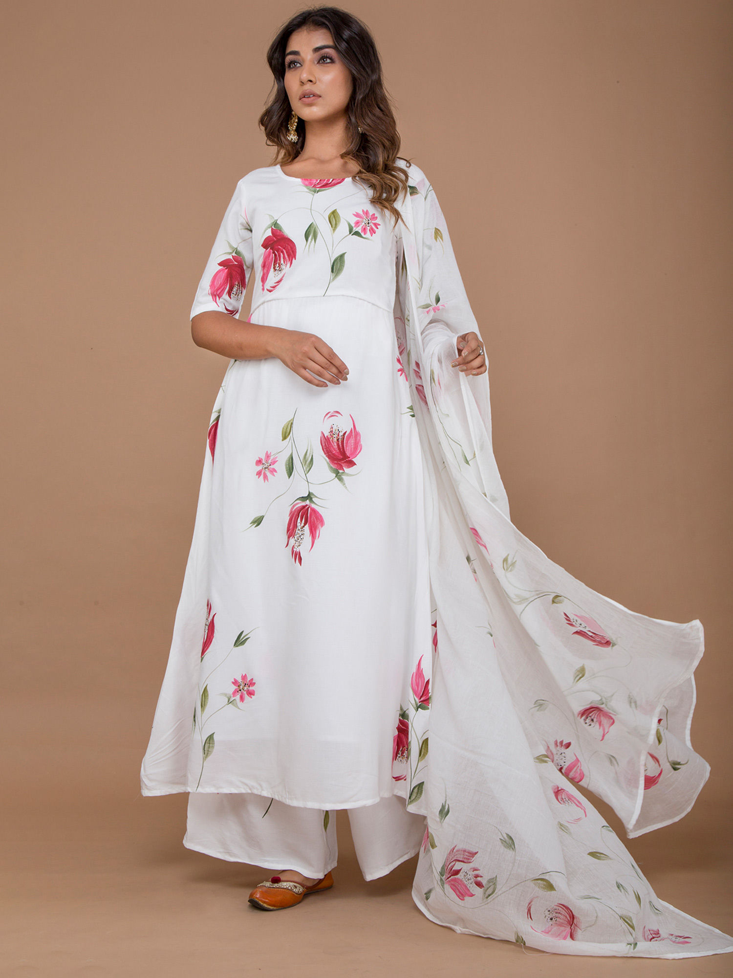 Lavanya The Label Salwar Suits And Sets Buy Lavanya The Label White Hand Painted Kurta With Palazzo And Dupatta Set Of 3 Online Nykaa Fashion