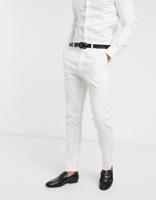 Asos Design Wedding Skinny Suit Pants In Stretch Cotton Linen In White Asos