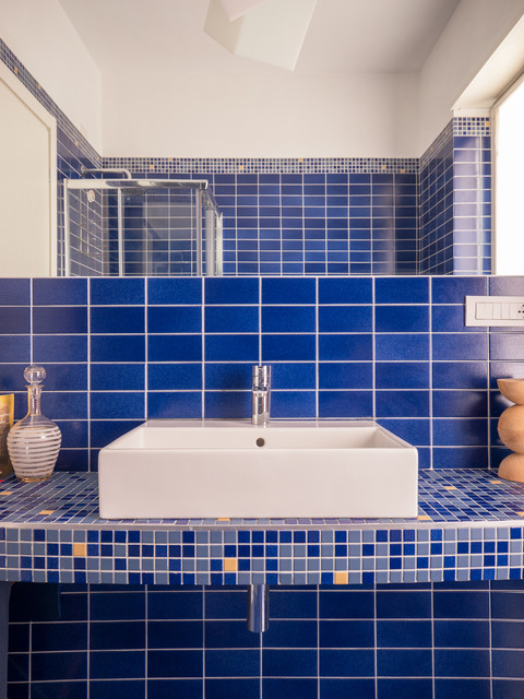 Il blu, insieme al rosso e al verde, è. Lo stesso dei manicotti Nano Flex La maglia Tutto Nano RoS in Nano Flex 3G elasticizzato segue il movimento L'aderenza evita alla maglia di spostarsi con il vento e aumenta il calore. Un piccolo bagno tutto blu Contemporary Bathroom Liadesign.