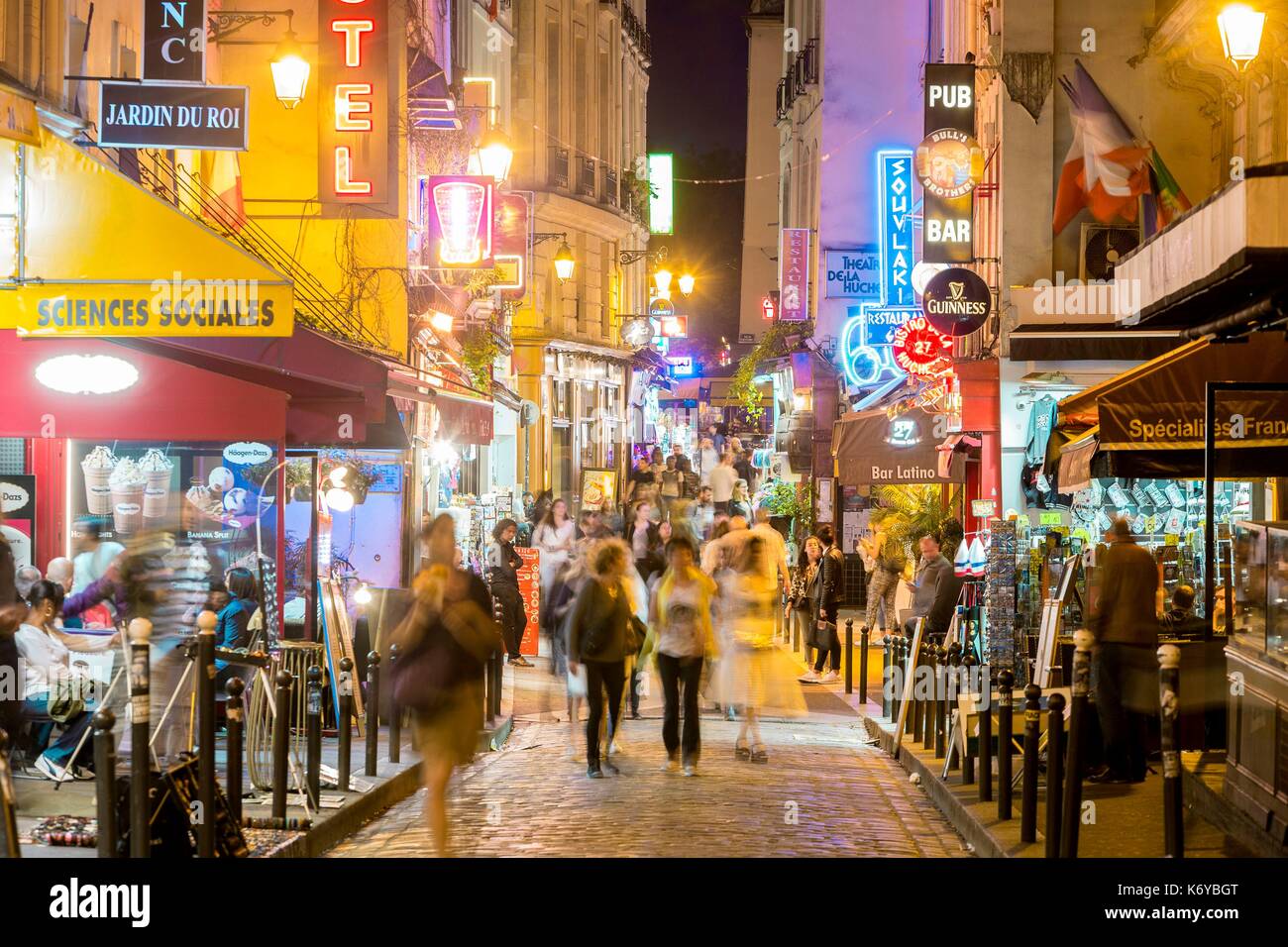 Rue Mouffetard Alla Rue Du Pot De Fer Quartiere Latino Parigi Francia Foto Stock Alamy