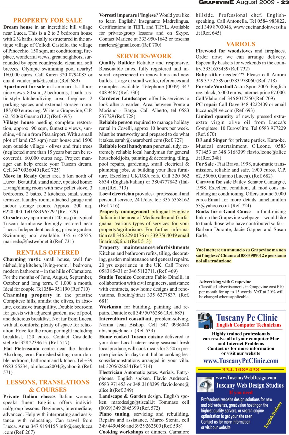 August Classified Ads