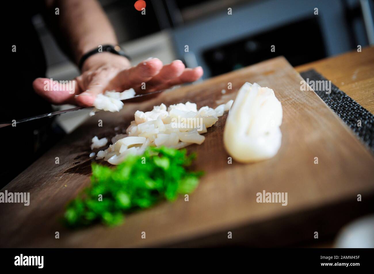 Lo Chef Stellato Otto Koch Prepara Le Salsicce Bianche Che Fa Di Pesce E Frutti Di Mare Traduzione Automatizzata Foto Stock Alamy
