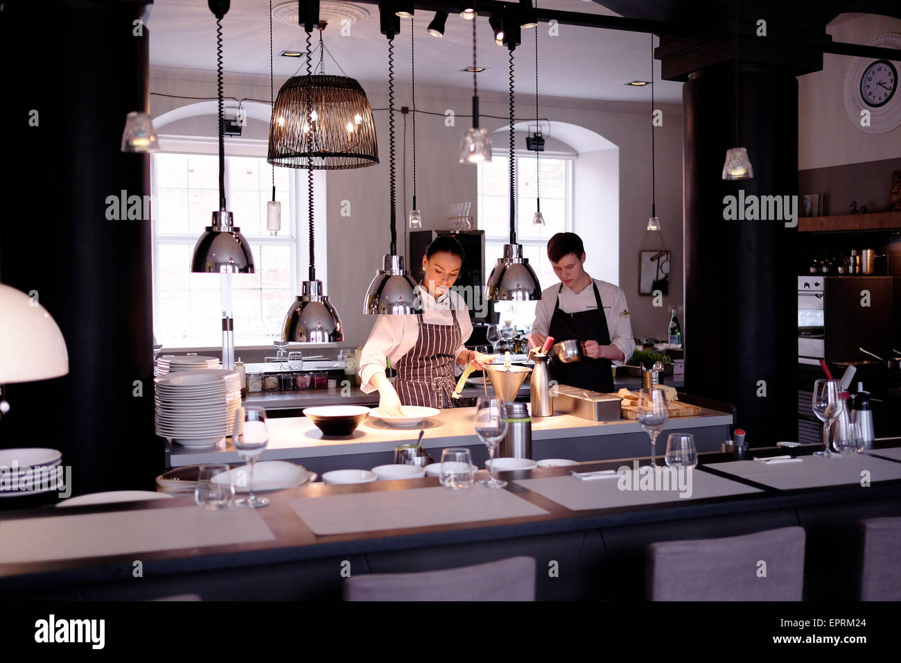 Giovani Camerieri Al 3 Chef Ristorante Tam Bus Labam Augt Traduzione Che Cosa E La Buona Volonta Di Crescere Nella Citta Vecchia Di Riga Capitale Della Repubblica Di Lettonia Foto Stock Alamy