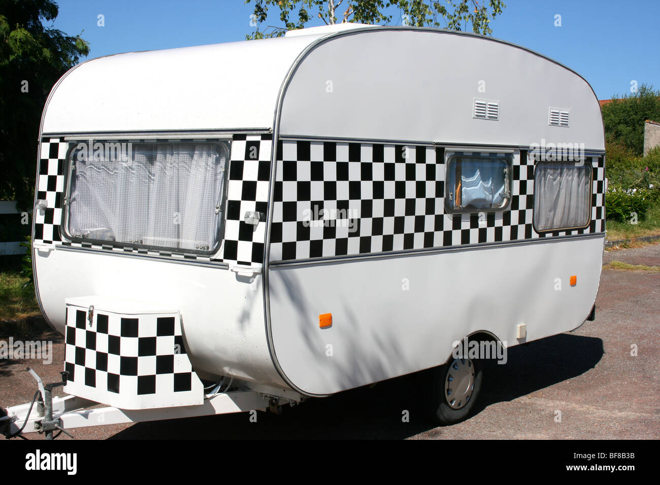 Bizzarre Vecchia Roulotte In Francia Con Il Bianco E Nero Modello Checkr Foto Stock Alamy