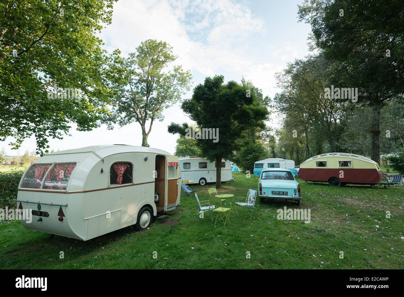 Francia Morbihan Le Roc Saint Andre Campeggio Domaine Du Roc Con La Sua Annata Roulotte E Baricanes Foto Stock Alamy