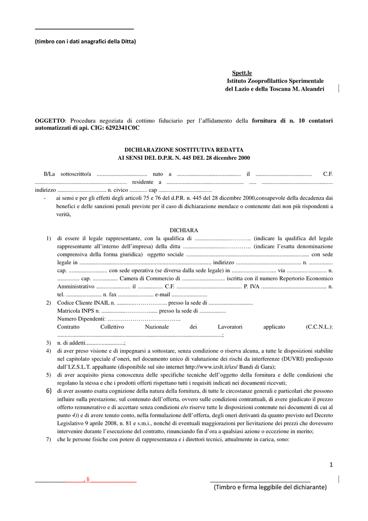 Timbro E Firma Leggibile Del Dichiarante