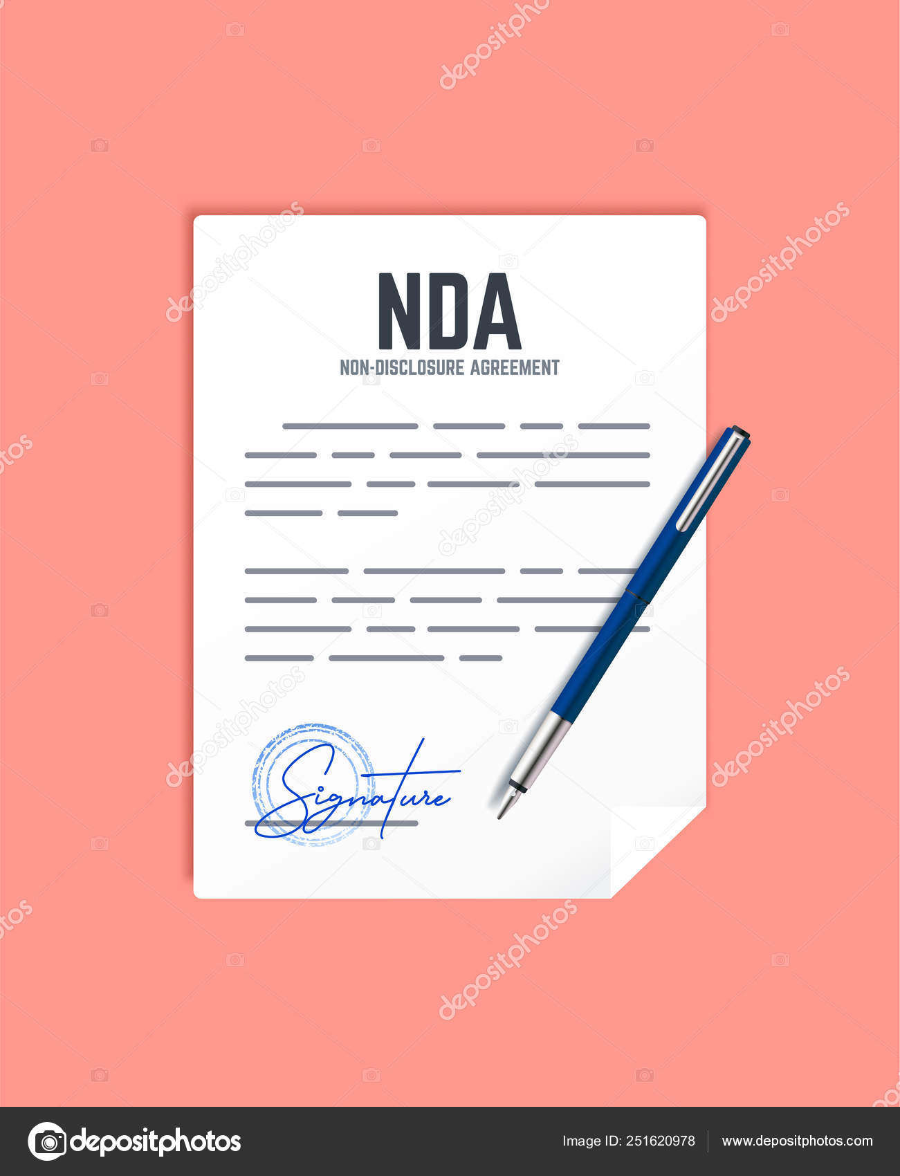 Non Disclosure Agreement Document With Stamp And Signature Vector Concept Nda With Pen Stock Vector C Pro Vector